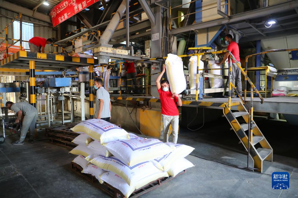 5月15日,在坐落埃及米努夫省的新期望埃及有限公司,工人在鸡饲料出产车间作业。新华社记者 隋先凯 摄